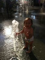 Then after somehow walking back to the same water fountain after a short break at TCC, they asked me again. And this time, my husband made a bet with my sis. They were making bets on whether if Benjamin will play with the water if we brought him into the water area. My sis said no, but my husband was pretty confident that Benjamin will played in it. And so the bet was 2 pints of beer should he win. (Because Pump Room was there)